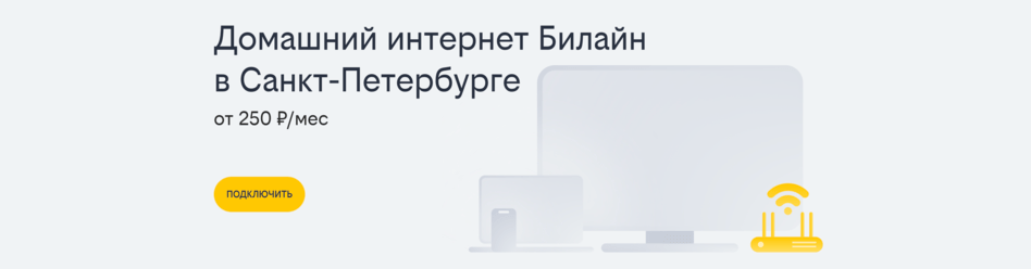 Интернет провайдер Билайн предоставляет услуги домашнего интернета и цифрового телевидения в Санкт-Петербурге с 2008 года. В результате слияния Golden Telecom и Corbina Telecom стало возможным предоставление высокоскоростного интернета физическим лицам по технологии FTTB - оптоволокно до дома. Преимущество данной технологии уже оценили более 300000 абонентов. На данный момент компания Билайн прочно укрепилась в ТОП-5 интернет провайдеров Санкт-Петербурга и занимает 5-е место по количеству клиентов.